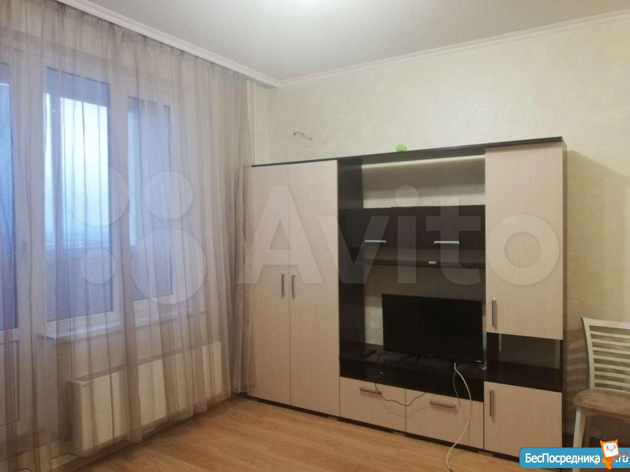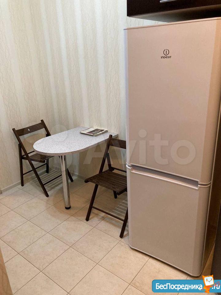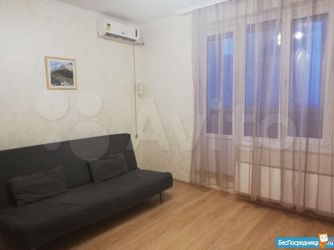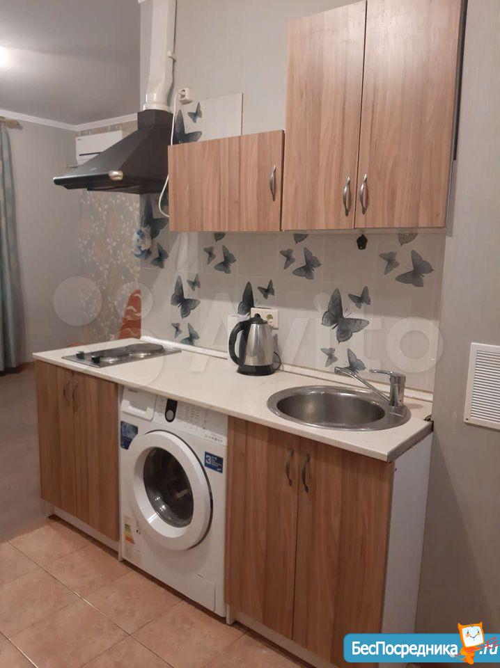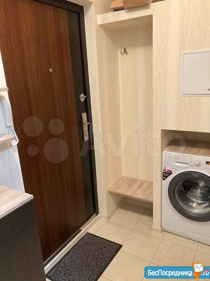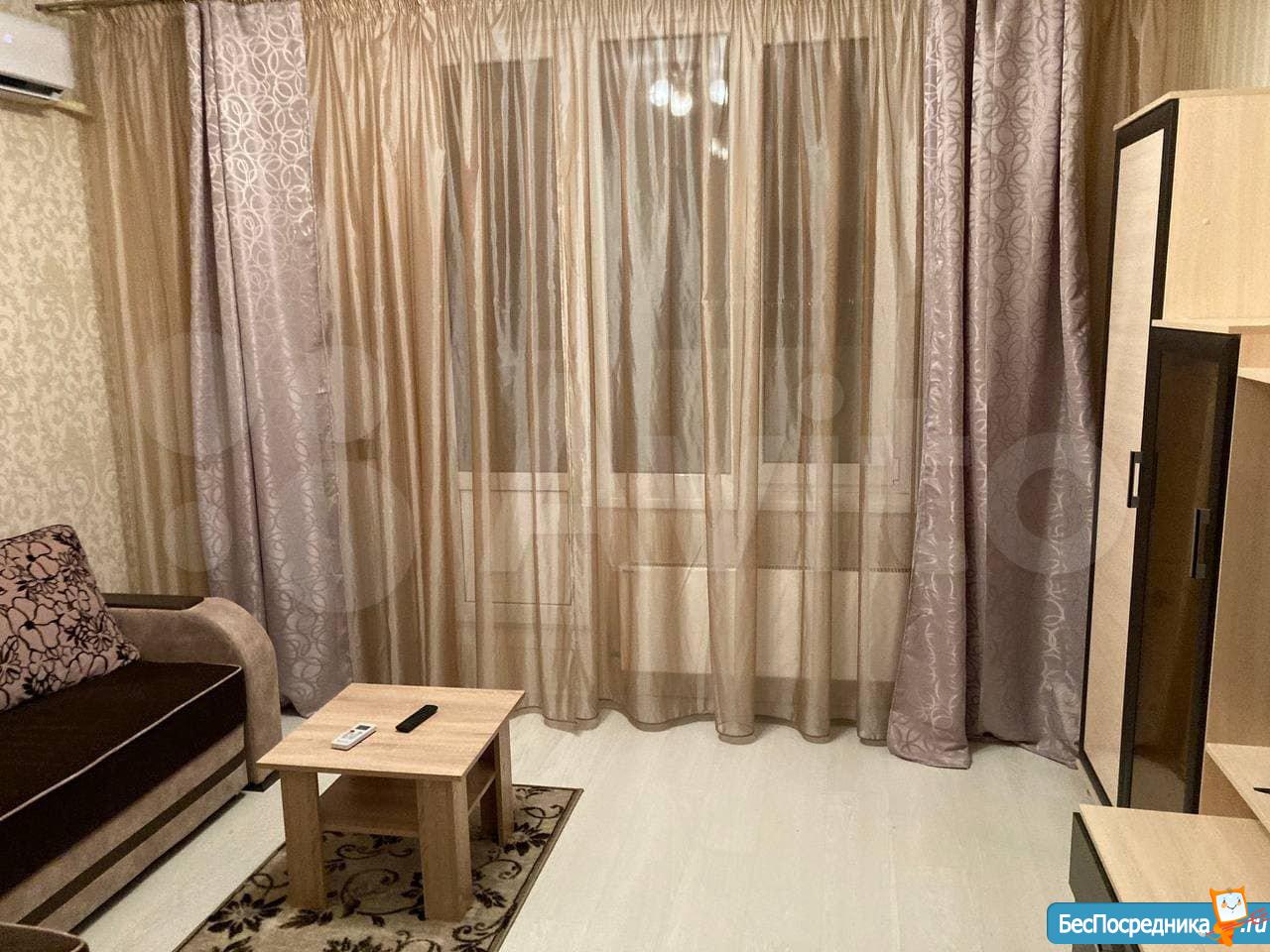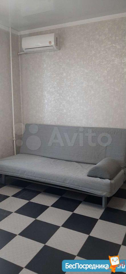 Сдается квартира-студия. Есть вся необходимая для жизни мебель и техника (сплит, холодильник, стиральная машина, телевизор, пылесос). Рядом детский сад и школа, крупные магазины (Гипер Магнит, Лента, Леруа), а также небольшой продовольственный магазин в доме (Апекс).