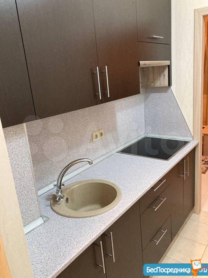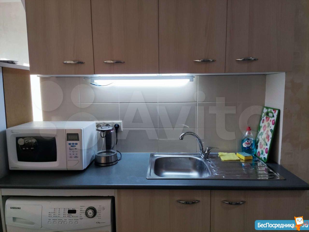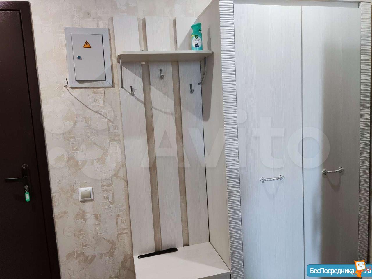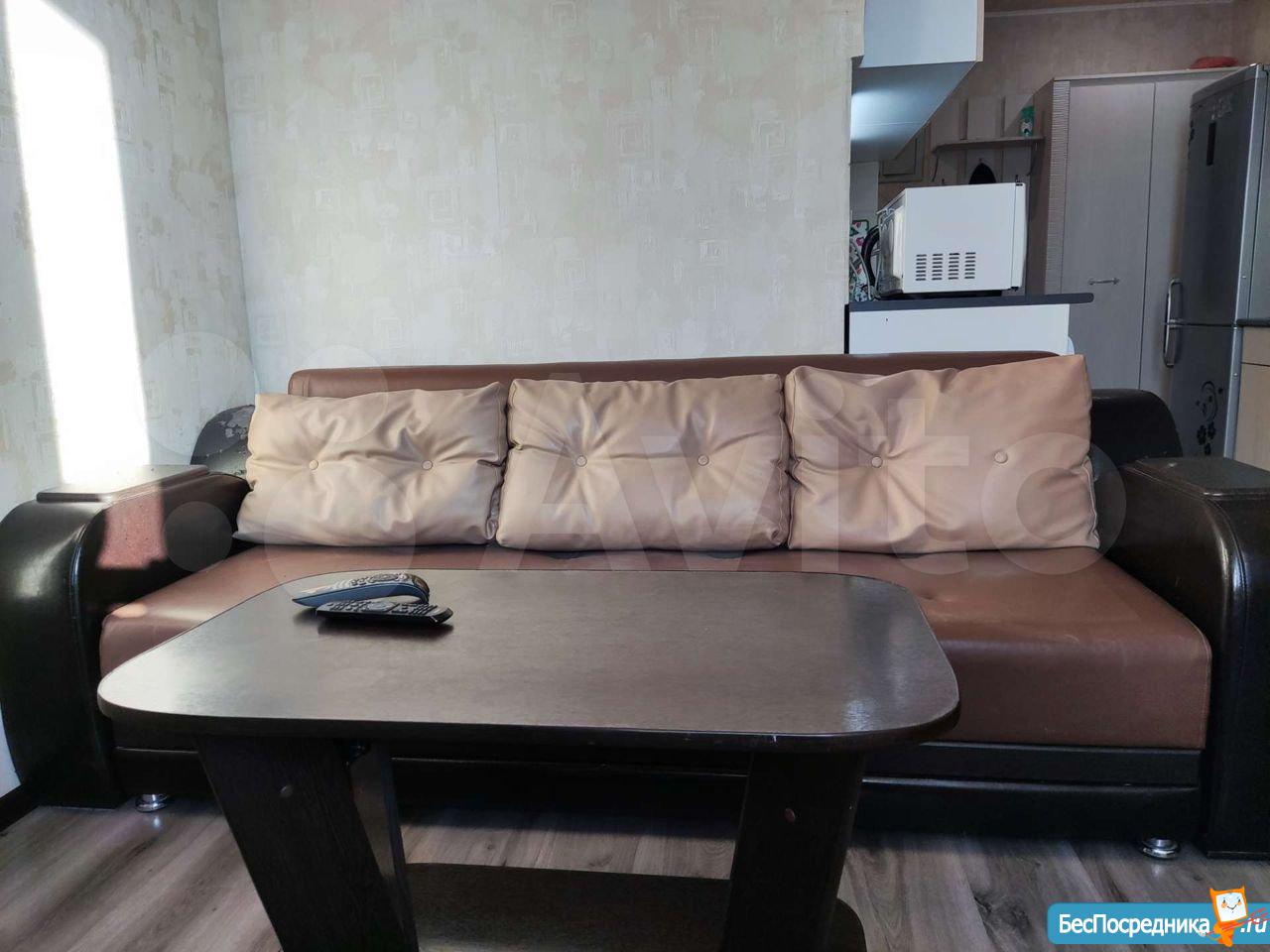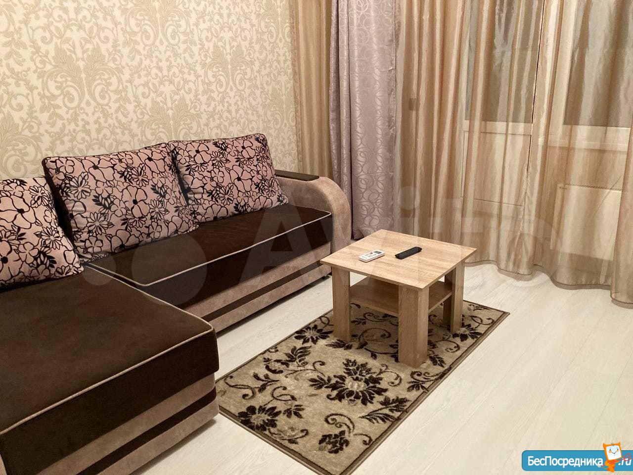 Сдается квартира-студия. Есть вся необходимая для жизни мебель и техника (сплит, холодильник, стиральная машина, телевизор, пылесос). Рядом детский сад и школа, крупные магазины (Гипер Магнит, Лента, Леруа), а также небольшой продовольственный магазин в доме (Апекс).