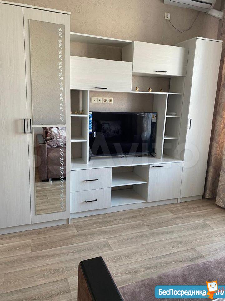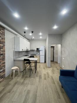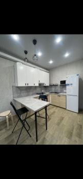 Еврооднушка в новостройке, кухня столовая 22м,спальня 12м,прихожая7.5м.В квартире есть вся необходимая мебель и техника. Благоустроенная территория, детская площадка, парковочные места.