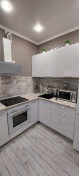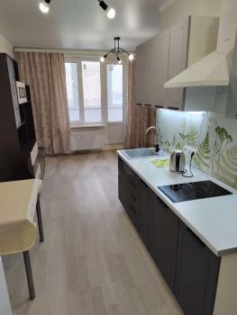 5 этаж 19-этажного дома; общая площадь 35,9 м2; кухня-10 , гардеробная, спальня, балкон, сан.узел. Полностью меблирована и оснащена всей необходимой техникой (холодильник, электроплита,вытяжка духовка, посудомоечная машина, 2 телевизора, стиральная машина ,2 сплит-системы). Все абсолютно новое. В квартире, не смотря на массу желающих, никто не жил. В доме 2 лифта (пассажирский и грузовой), консьерж.