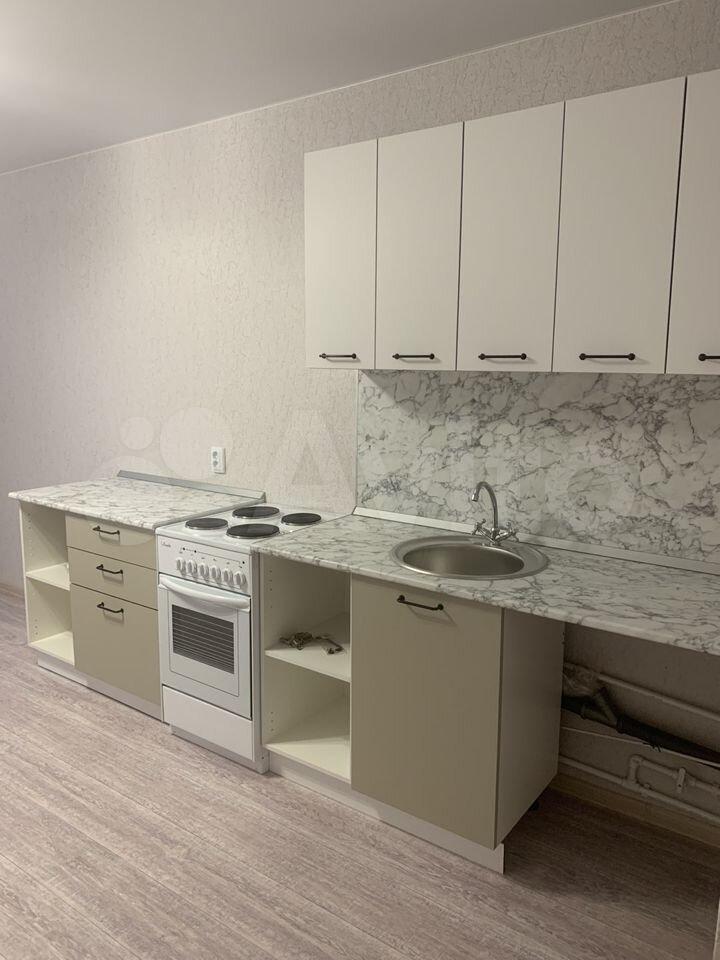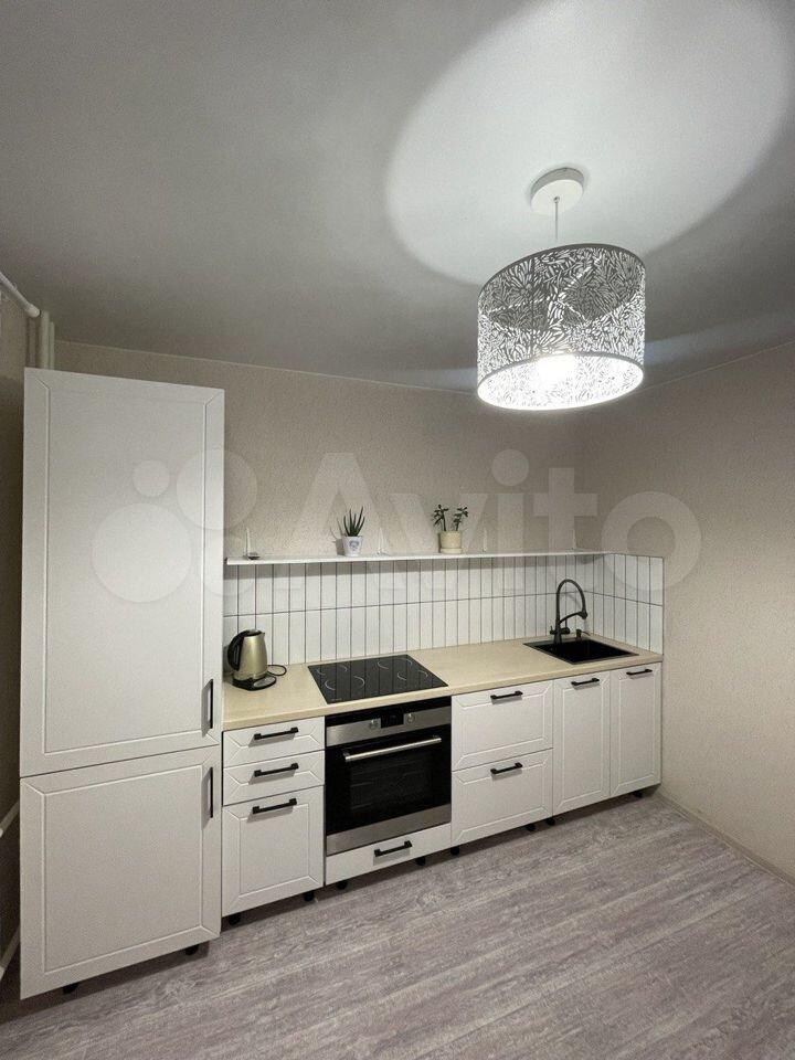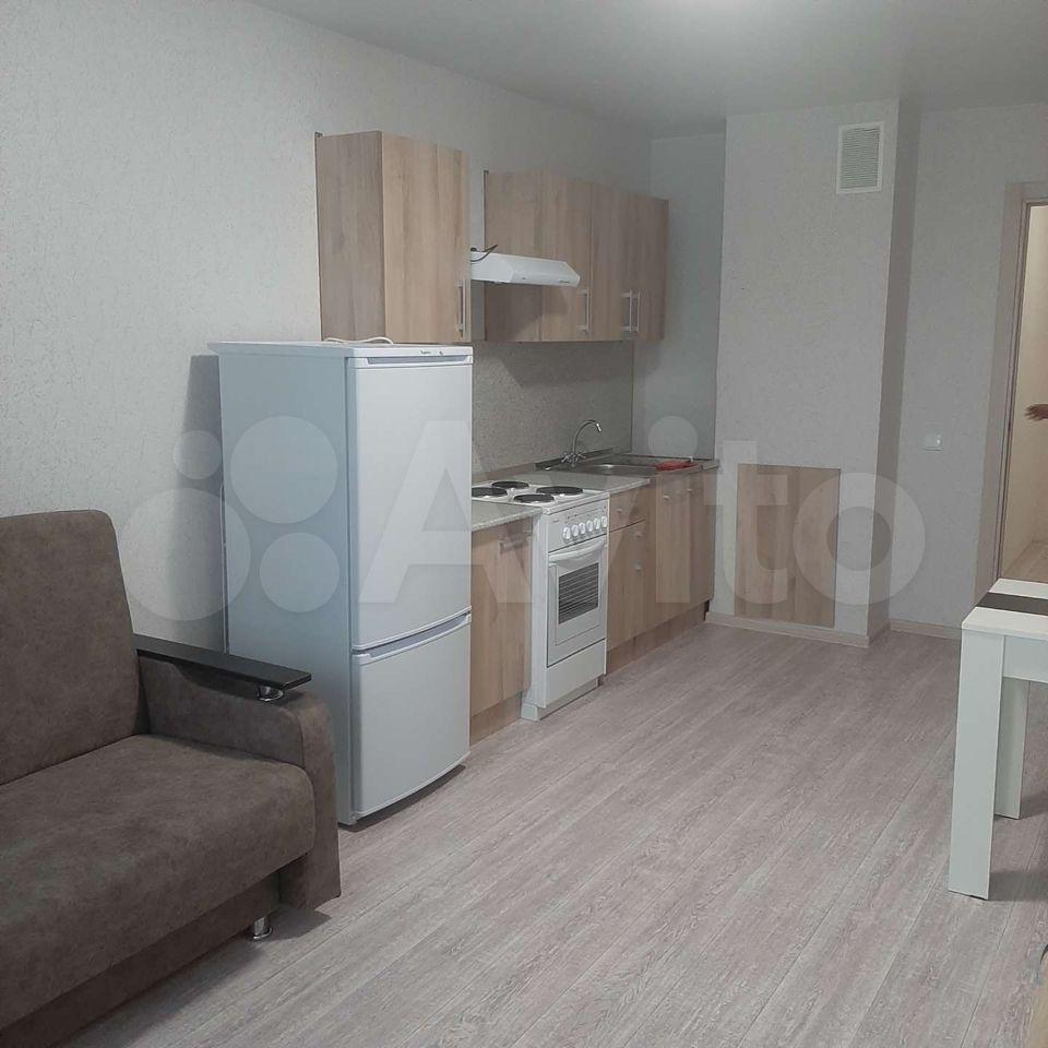 Новая квартира с новой мебелью, плитой, холодильником, стиральной машиной.