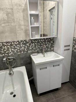 Квартира с косметическим ремонтом, что создаёт приятную и комфортную атмосферу. На кухне и в комнате есть необходимая мебель. Для вашего удобства в квартире имеется вся необходимая техника: кондиционер, холодильник и стиральная машина. Ванная комната оборудована ванной, а санузел в квартире отдельный.