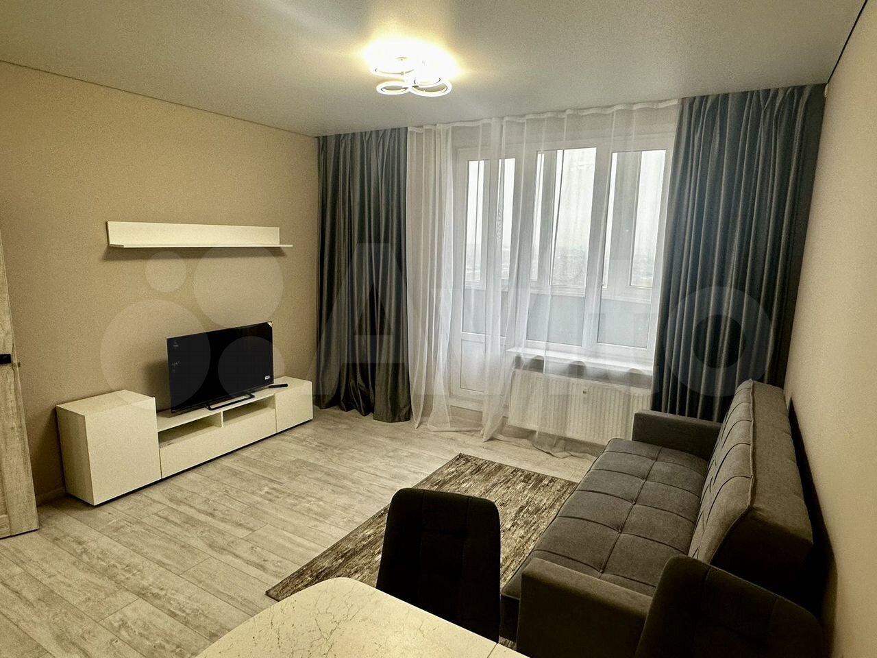 Новая квартира с хорошим ремонтом. Отличное расположение дома, все необходимое в шаговой доступности (магазины, спортивные площадки, остановка общественного транспорта). В подъезде за порядком следит консьерж. Установлена новая мебель (шкаф-купе, диван, прихожая, гарнитур под телевизор, встроенная кухня, стол, стулья) и техника (варочная панель, духовой шкаф, вытяжка, чайник, микроволновка, холодильник, сплит-система, стиральная машина, телевизор).