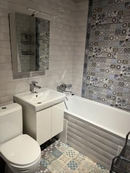 Квартира чистая, с аккуратным ремонтом, полностью меблированная. Имеется шкаф, кровать, диван, стенка, кухонная мебель, стиральная машина, холодильник, духовой шкаф, варочная панель, микроволновая печь, сплит система.