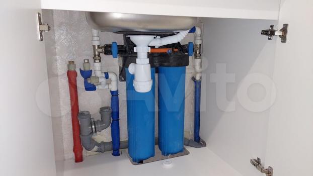 Установлены фильтры водопроводной воды «вв20», две колбы, с возможностью переключения обхода фильтров.