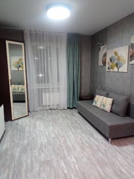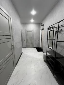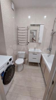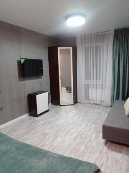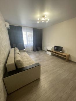 Сдаётся квартира в новом доме, с отличным ремонтом. Тёплые полы в кухне, ванной комнате и коридоре. Два спальных места ( двухспальная кровать и раскладной диван). Кондиционер будет установлен до лета. Микроволновка.