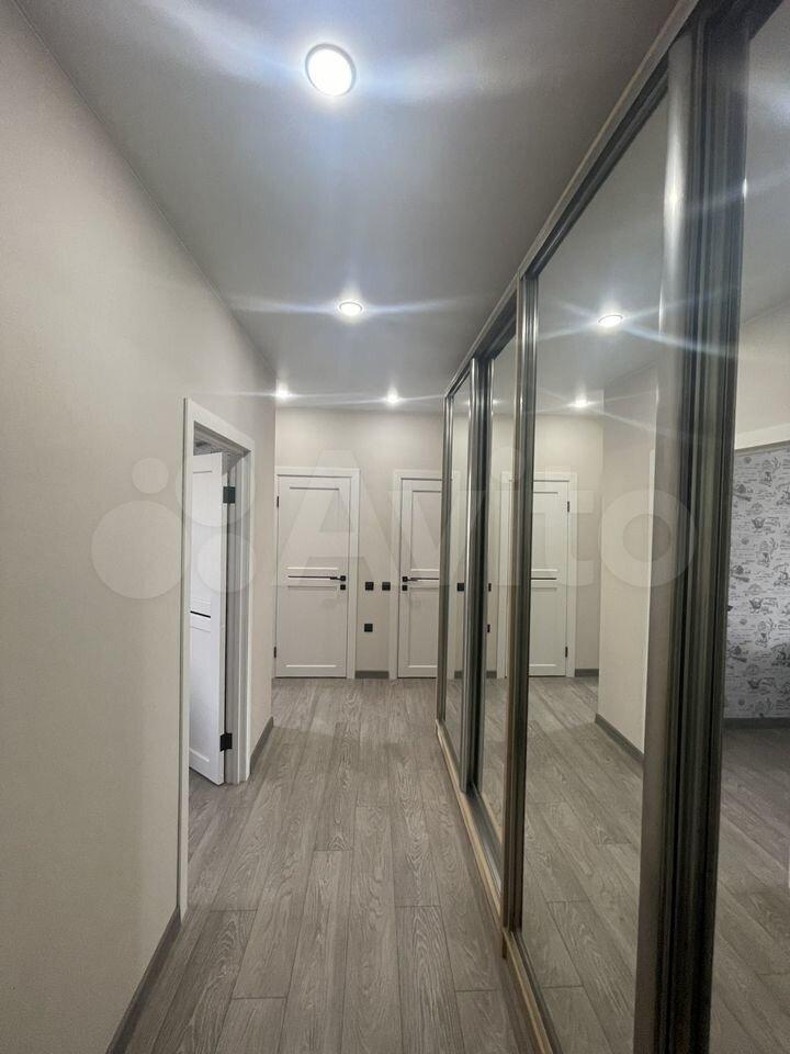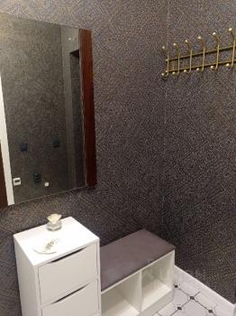 В прихожей - вместительный гардеробный шкаф-купе (до потолка), с зеркалами. Освещение на потолке двух-зонное, с трехточечными проходными переключателями.