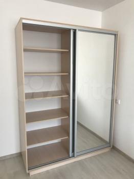 из мебели: диван, кухня, стенка, зеркальный шкаф купе