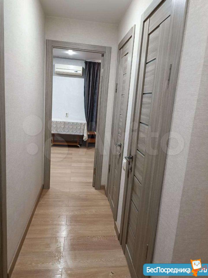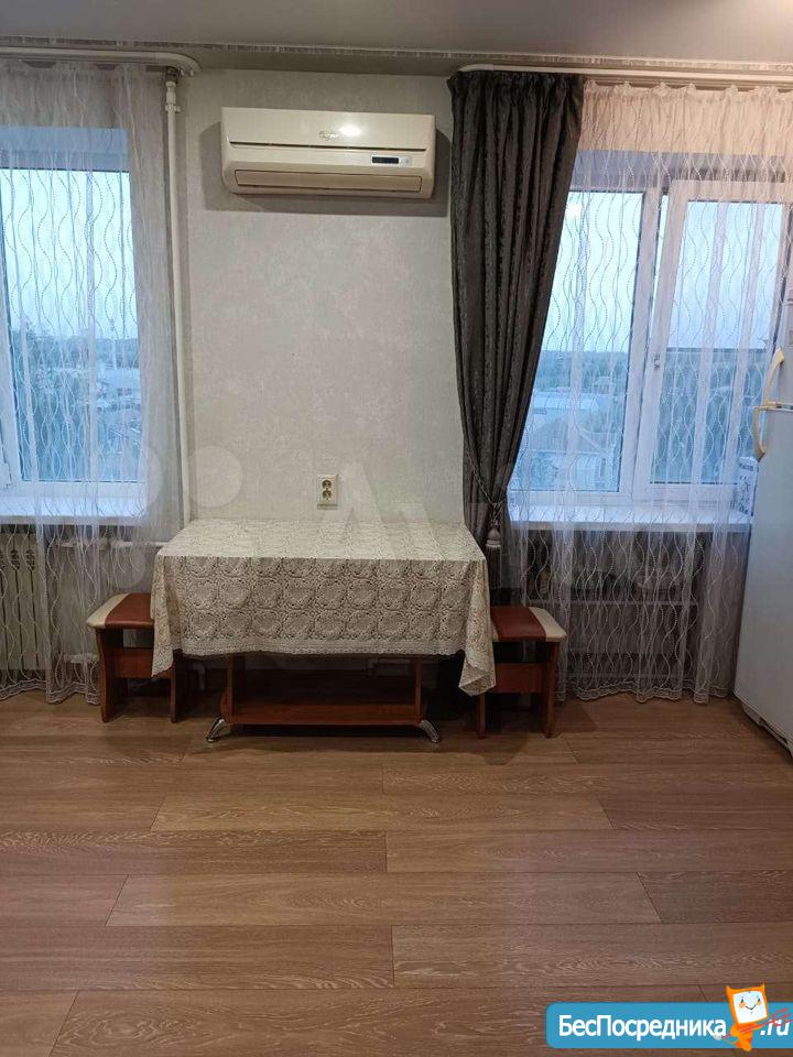 Сдаёт собственник) квартира с ремонтом, кухня студия и комната. С/у раздельный, балкон застеклен, оборудован, встроенный шкаф. Коридор дополнительно закрывается, есть место для хранения. Есть вся необходимая посуда, мебель. Подробности по телефону
