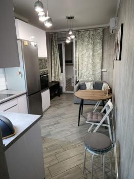 Квартира с евроремонтом, полностью готова к проживанию. В комнате и на кухне есть вся необходимая мебель, а также современная техника: холодильник, кондиционер и стиральная машина. Санузел совмещённый, оборудован ванной.