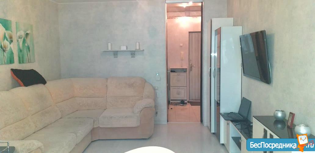 Уютная студия для семейной пары. Имеется два спальных места,платяные шкафы, кухонная мебель, стиральная машинка, варочная панель, гладильная доска.,тв,холодильник, сплит. Все необходимое для проживания двоих. Рядом садик, школа, рынок Шайба, Окей. Являюсь собственником. Предоплата 13000 плюс 5000 залог за коммуналку за последний месяц проживания. Оплата по счётчикам входит в эту сумму. Зимой около 5000,летом около 2500 руб
