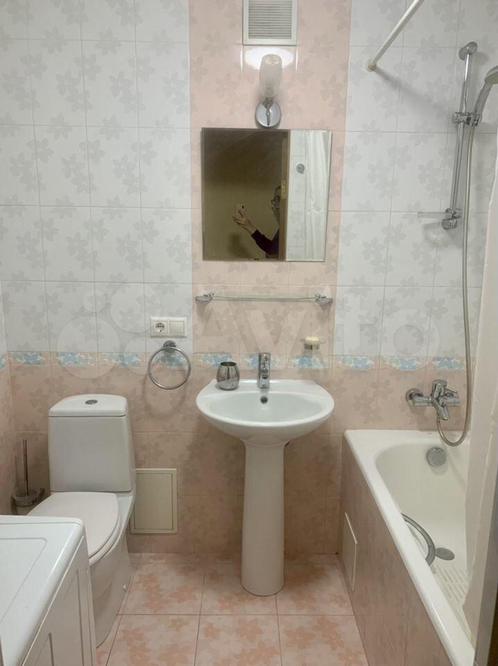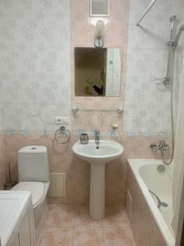 Квартира с косметическим ремонтом, обставлена необходимой мебелью и техникой: в наличии кондиционер, холодильник, телевизор и стиральная машина. Планировка включает совмещённый санузел с душевой кабиной и балкон с видом на улицу.