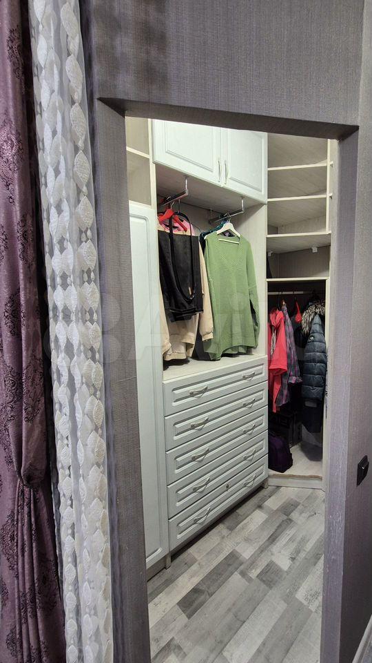 В квартире есть очень много места хранения за счет встроенных шкафов во всю длину стены и гардеробной.