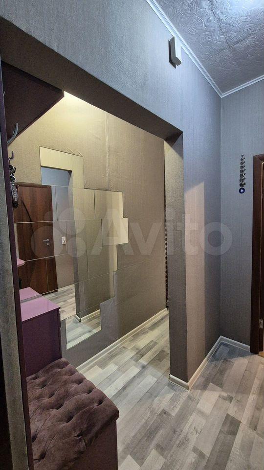 В прихожей так же встроенные шкафчики с пуфиком, зеркала, и 2х-ярусная полочка для обуви и сумок.