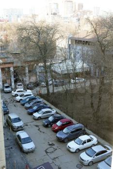 В закрытом дворе круглосуточно охранник.