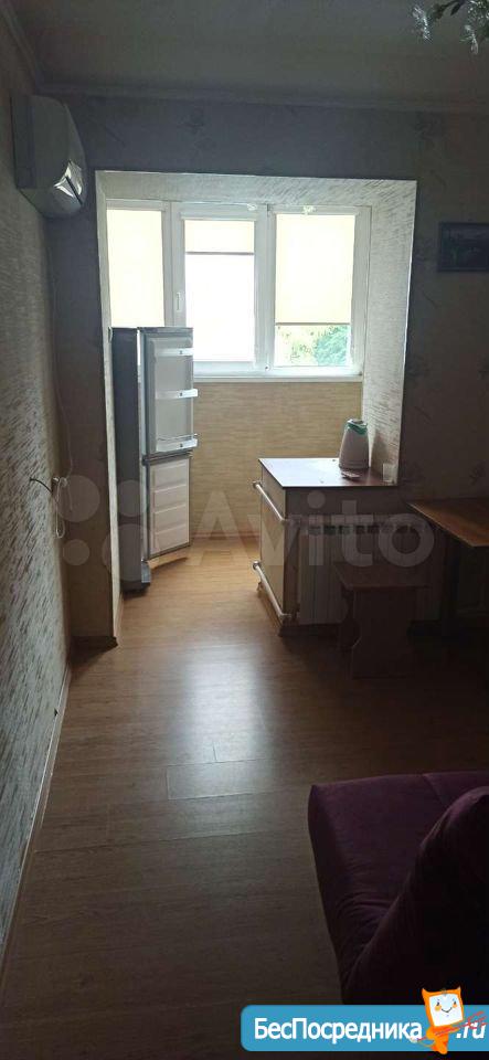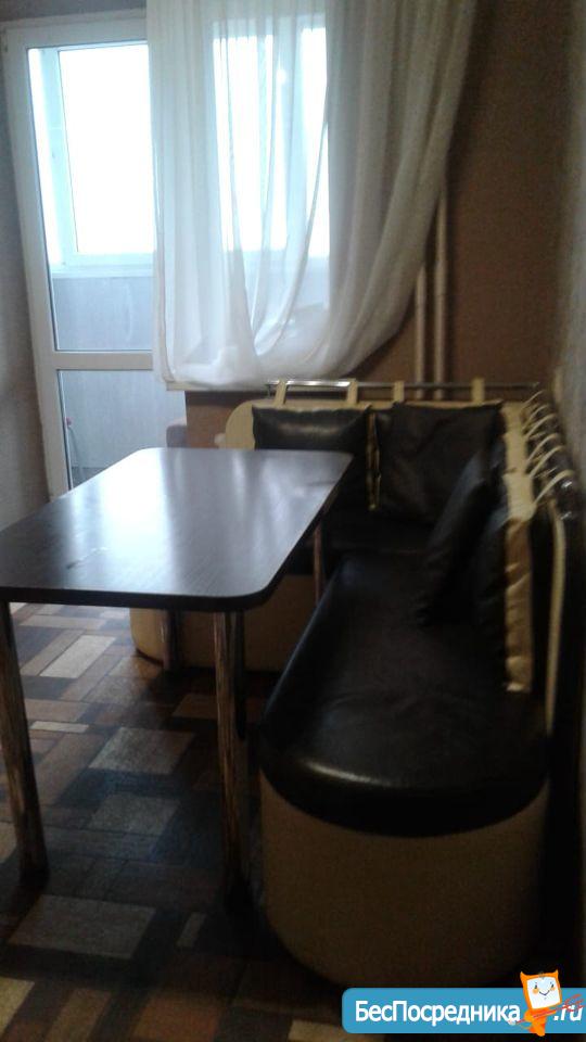 Однокомнатная квартира с хорошим ремонтом, очень светлая и тёплая, на полу плитка, большая лоджия из кухни, есть стиральная машина, на воде счётчики, тамбур на 2 квартиры замыкается, 2 спальных места, есть раскладушка