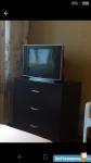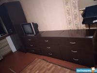В комнате мебель Икея: диван,шкаф, 3 комода, а также малогоборитный диван на 2 спальных места, микроволновка,холодильник, телевизор, стиральная машина,2 стола и 2 кресла пластмассовые.Санузел (раздельно) и раковина - на 2 комнаты. Кухня общая.