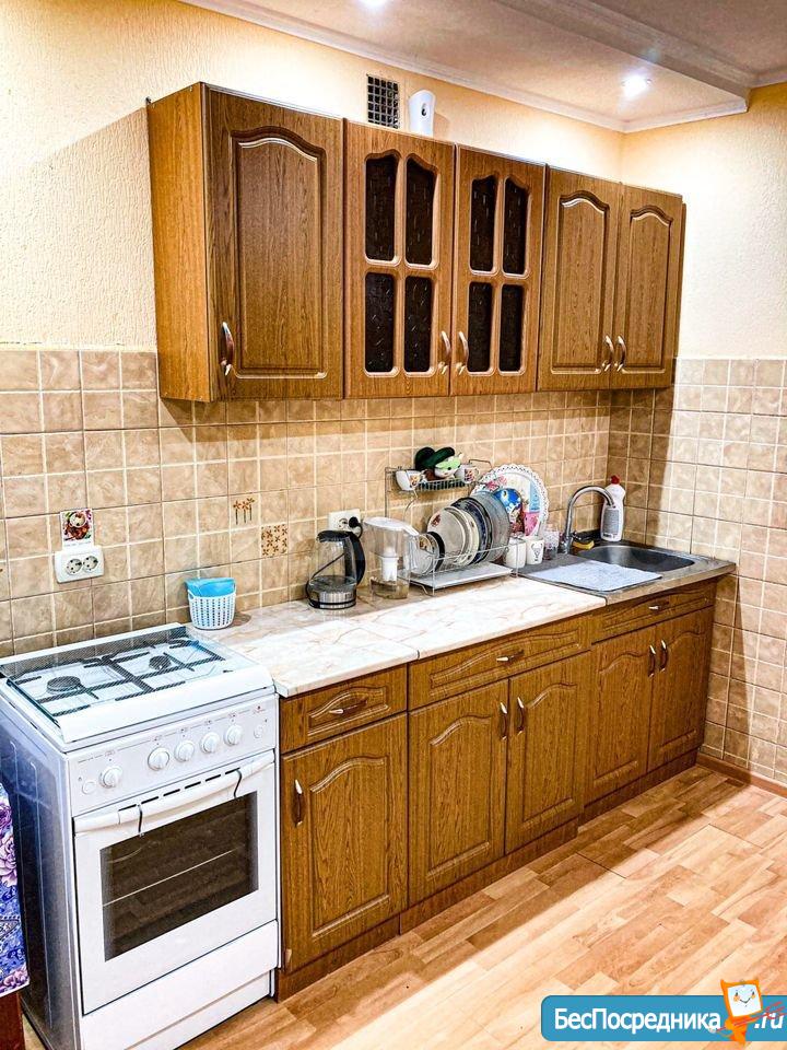 В квартире есть вся бытовая техника и мебель, а именно: Холодильник, микроволновая печь с функцией духовки, газовая печка, стиральная машинка, кондиционер, кухонный стол с стульями, раздвижной диван, компьютерный стол, комод для обуви, большая гардеробная, телевизор. Балкон застеклен и утеплён. На балконе присутствует подвесная сушилка для белья, в ванной комнате всегда тёплый полотенцесушитель. В доме находится Банк и свежая выпечка. Рядом с домом две пятерочки, магнит, фикс прайс, вещевой магазин, магазины с овощами и фруктами. Пункт выдачи OZON и WILDBERRIES. Во дворе хорошая ухоженная детская площадка. По близости школа №81 и детский сад. Близко транспортные остановки.