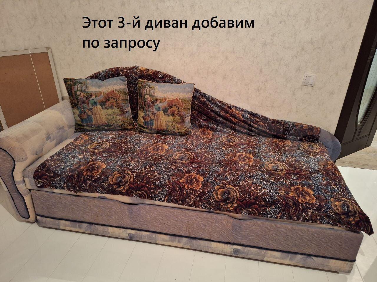 В квартире сейчас 2 дивана (на фото), третий привезем в квартиру при необходимости в день сдачи.