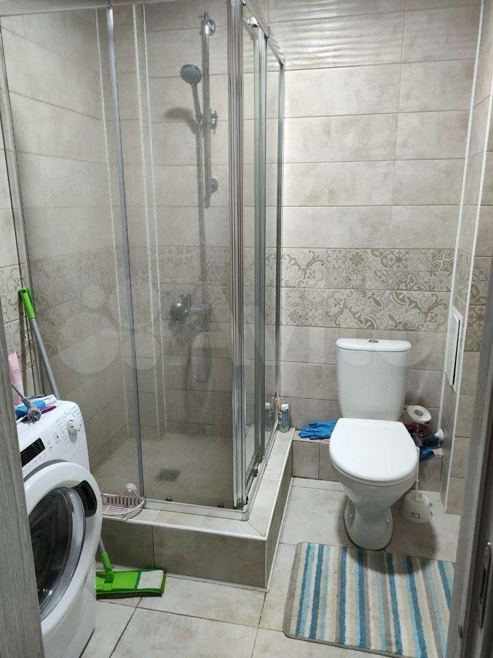 В квартире двуспальная кровать 180*200 с прикроватными тумбами, комод, просторная гардеробная, оборудованная кухня с холодильником, микроволновкой, индукционной плитой, электрической духовкой, встроенной стиральной машиной, есть посуда. В ванной душевая кабина.