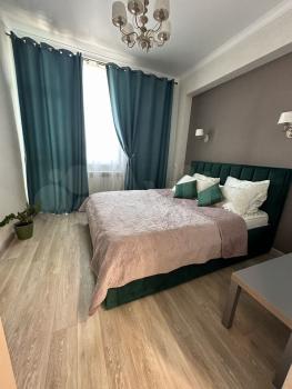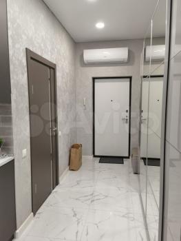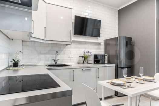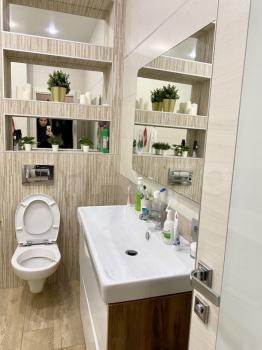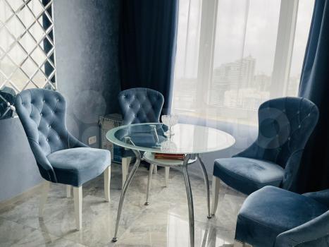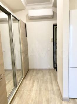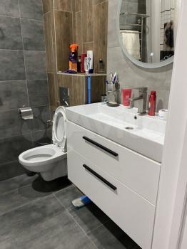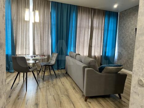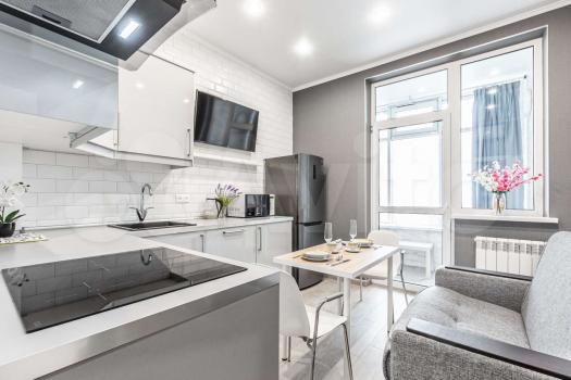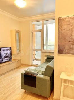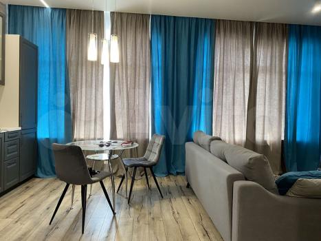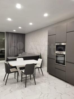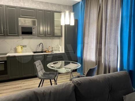В квартире сделан дизайнерский ремонт, поэтому пространство выглядит стильно и современно. В наличии вся необходимая мебель и техника: кондиционер, холодильник, телевизор, стиральная машина. На кухне есть удобная мебель и все необходимые приборы для готовки. Санузел совмещённый, с ванной. Окна выходят на улицу, поэтому в квартире всегда светло и уютно.