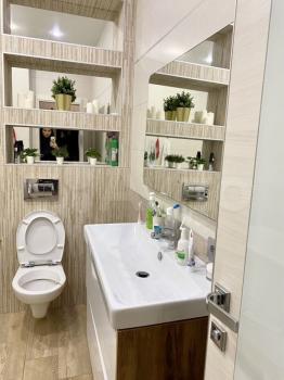 2) Cовмeщенный caнузел c инсталляцией, удoбным меcтом хранения у раковины, тропическим душем, красивой стеклянной перегородкой и освещением.