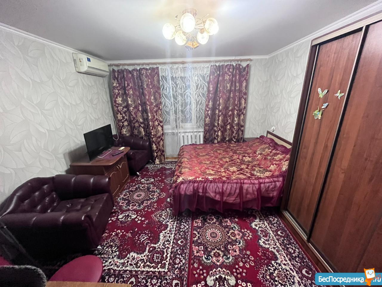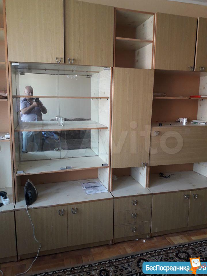 Комната диван шифонер кресло, окно евро.Есть холодильник старенький и стиральная машина.