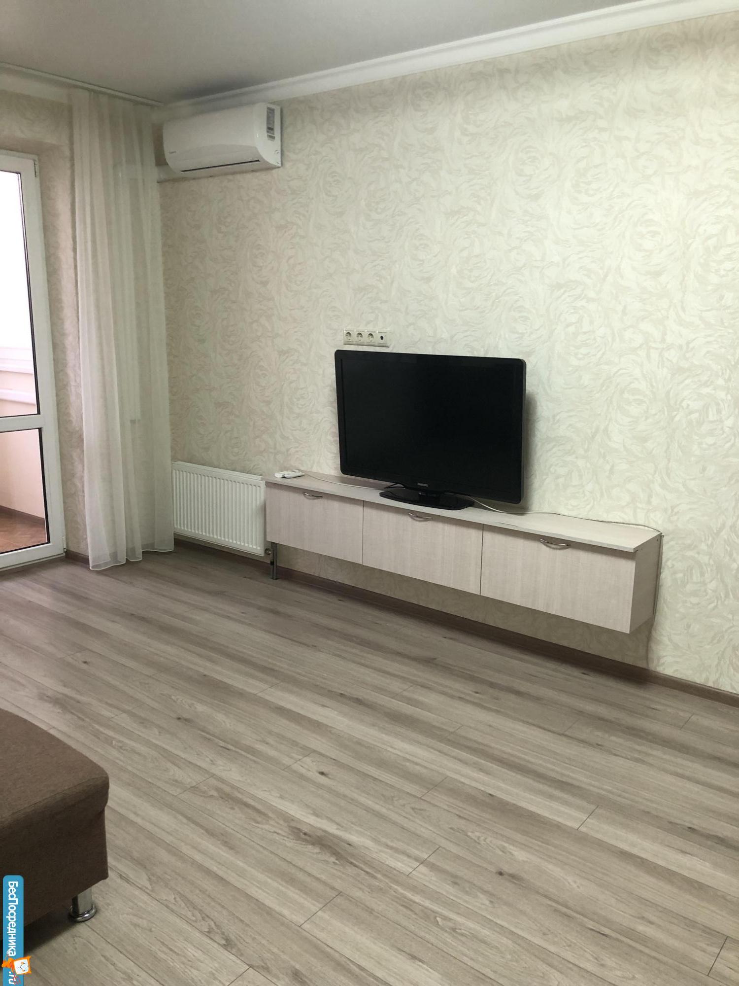 Сдаётся новая большая студия, с новым ремонтом в новом доме. Индивидуальное отопление, коммунальные платежи действительно низкие. Квартира очень теплая, из трёх радиаторов работает только один, хватает. Новая кухня, плита, ванна, подвесной унитаз, сантехника, большой вместительный шкаф, комод, компьютерный стол и тд. Холодильник, стиральная машина, телевизор 2000 каналов Wi Fi. Интернет и телевидение за наш счёт. Большая утепленная лоджия с отдельным радиатором, может служить отдельной комнатой, кабинетом или спальней. В доме два больших лифта, видео наблюдение, подземная парковка, детская площадка, закрытая территория с парковкой во дворе. Рядом рынок, сбербанк, почта, библиотека, Храм, остановки практически на все направления.