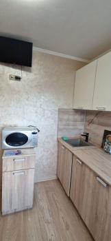Однокомнатная квартира на 4 этаже, в доме без лифта. Чистая. Есть холодильник, стиральная машинка, два телевизора, СВЧ-печь,кондиционер.