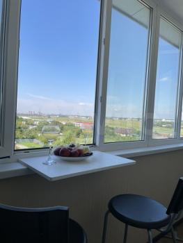 ?Из окна отличный вид на старый аэропорт, есть столик и барные стулья, можно поужинать, попить кофе или работать/учиться с прекрасным видом.