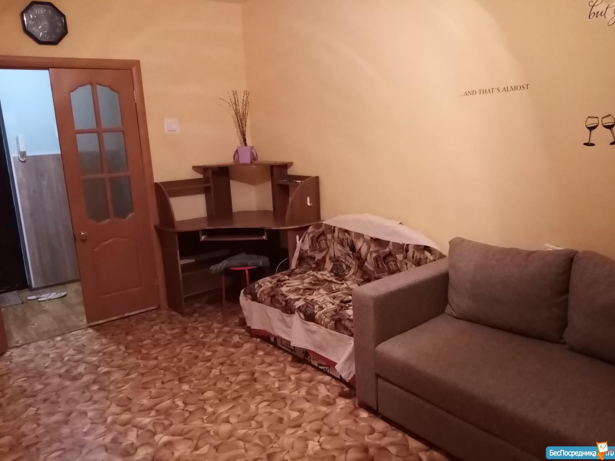 Собственник.Квартира в хорошем состоянии, очень уютная чистая светлая,мебель,техника, застекленная большая лоджия, чистый подъезд,зеленый двор, детские площадки, парковочное место на охраняемой стоянке рядом с домом .конечная остановка транспорта.Аренда+оплата по счетчикам, залог 4000.