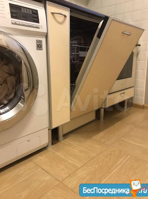 Кухня: стол, стулья, микроволновка, холодильник, стиральная машинка.