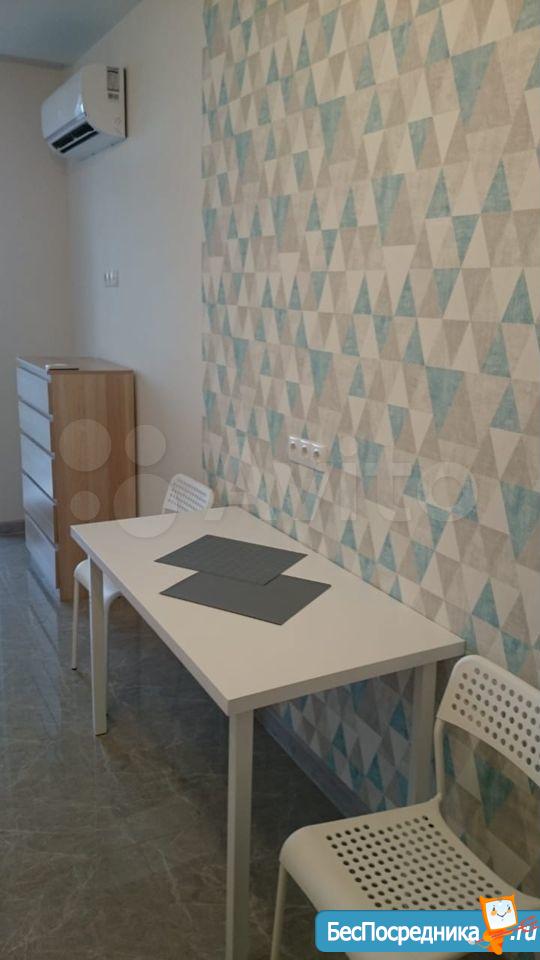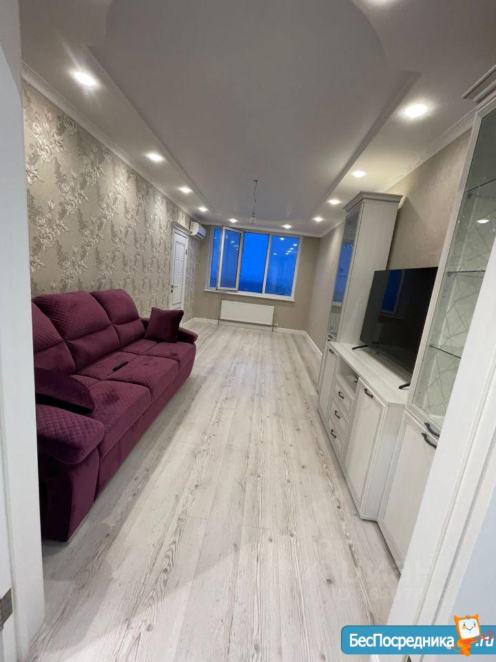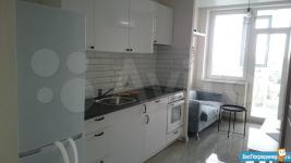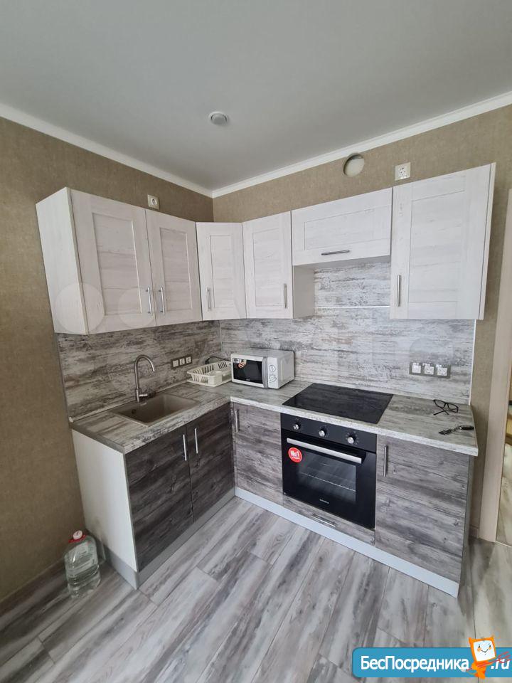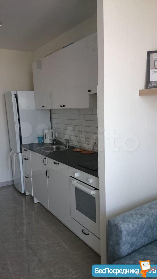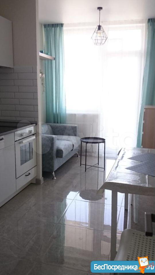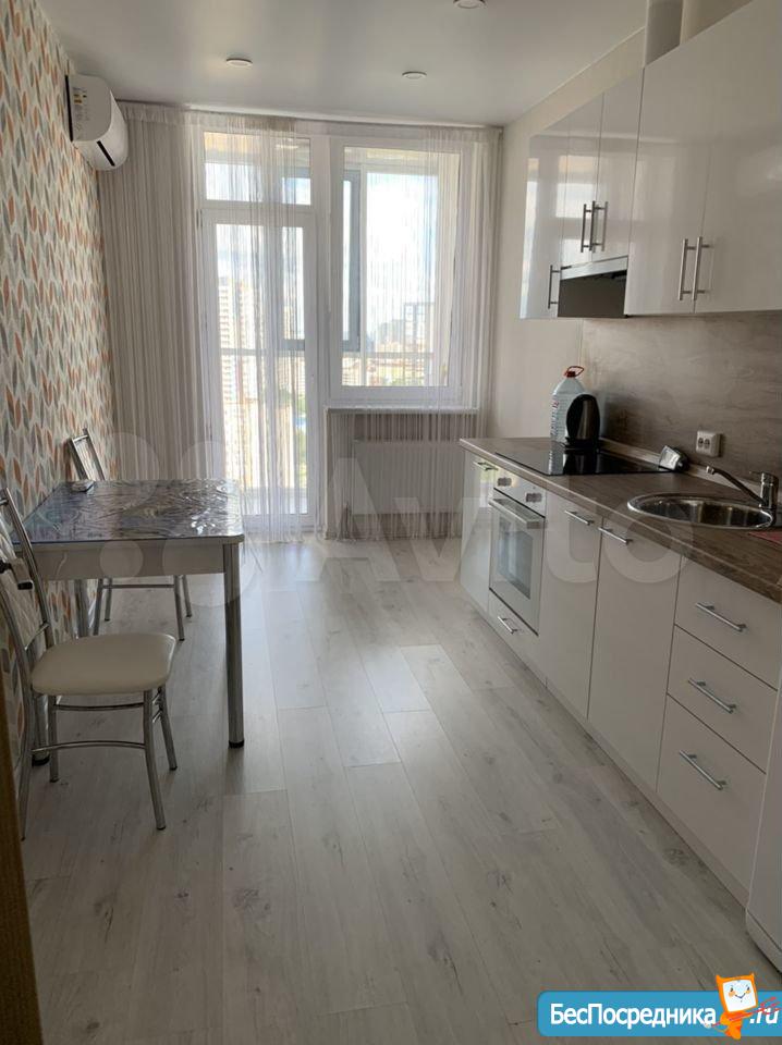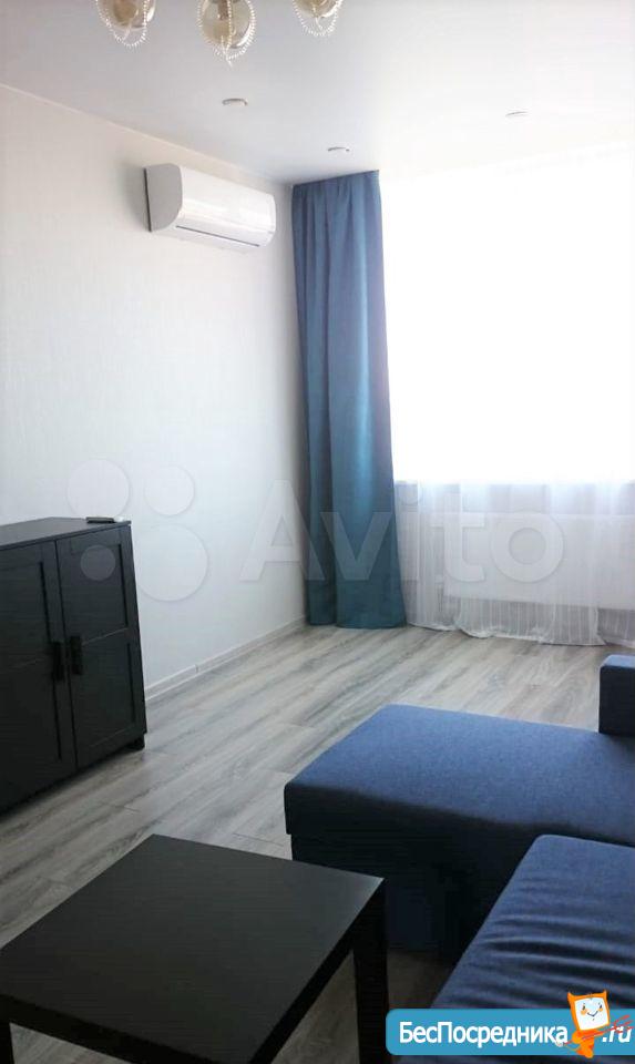 В квартире выполнен качественный ремонт. Жилая комната со всем необходимым для комфортного проживания: вместительный зеркальный шкаф-купе, угловой диван, письменный стол, мебель под тв, телевизор. Кухня оборудована встроенной современной мебелью с подсветкой рабочей зоны, вытяжкой, электрическими варочной панелью и духовым шкафом. Есть двухкамерный холодильник, микроволновая печь и электрический чайник. Обеденная группа см. фото. Из кухни выход на лоджию с панорамным остеклением. В комнате и кухне установлены сплит-системы. Санузел совмещенный. Есть стиральная машинка-автомат. Квартира сдается на длительный срок некурящим людям и без животных.