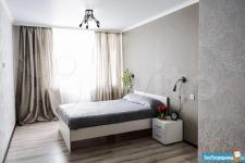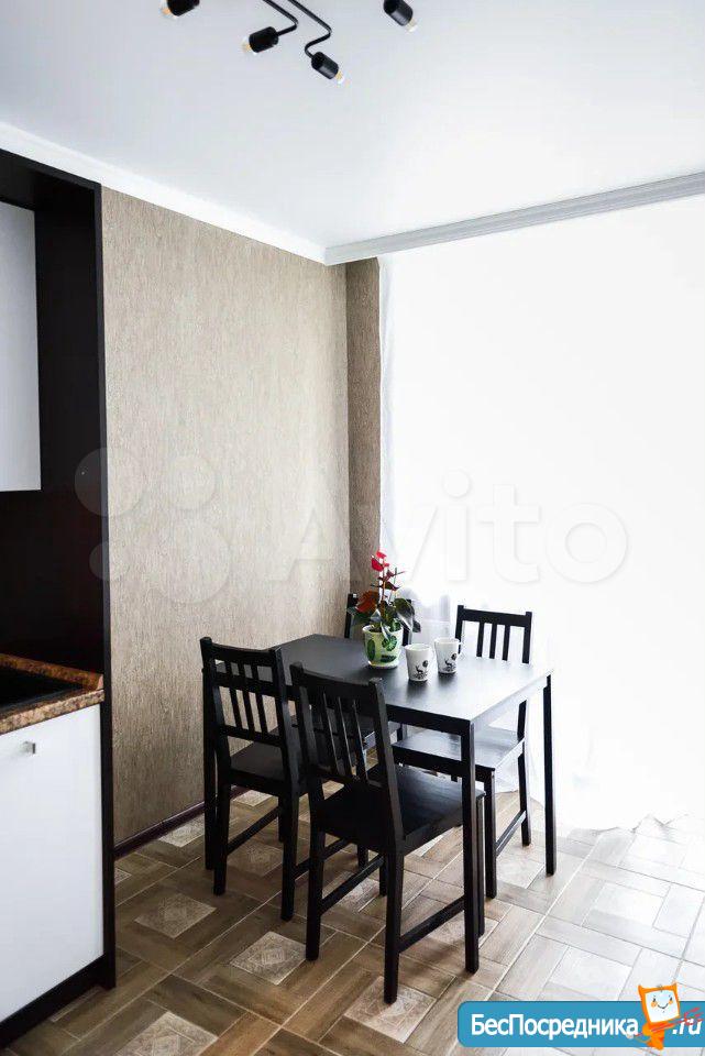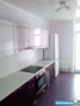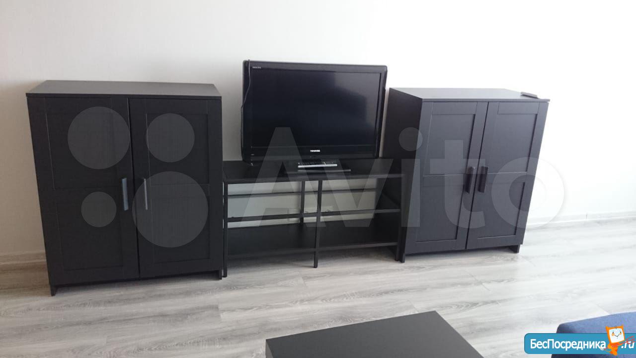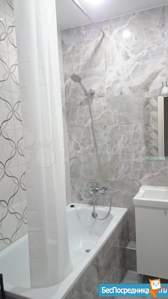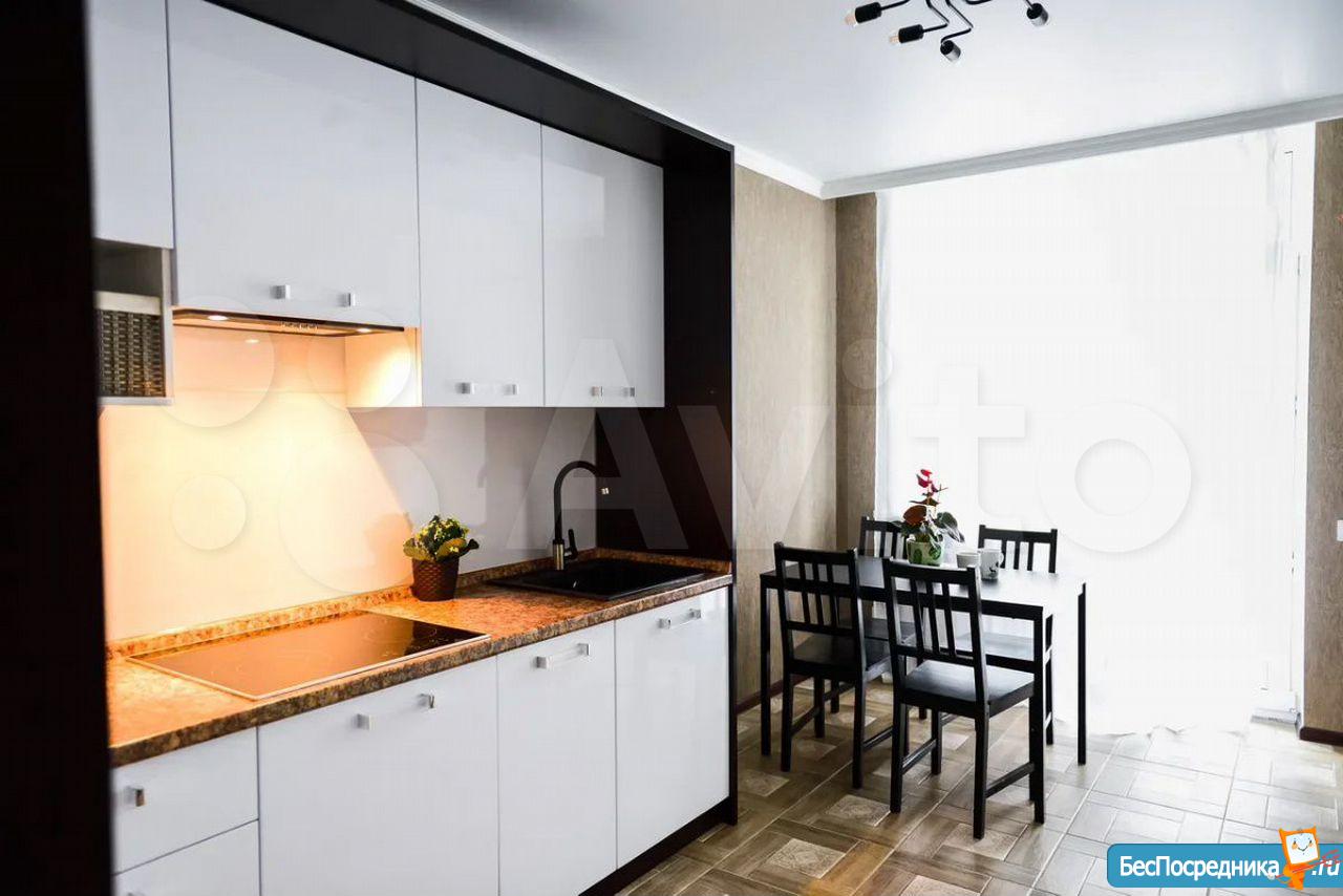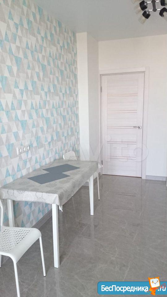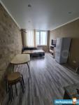 В квартире выполнен качественный ремонт. Жилая комната со всем необходимым для комфортного проживания: вместительный зеркальный шкаф-купе, угловой диван, письменный стол, мебель под тв, телевизор. Кухня оборудована встроенной современной мебелью с подсветкой рабочей зоны, вытяжкой, электрическими варочной панелью и духовым шкафом. Есть двухкамерный холодильник, микроволновая печь и электрический чайник. Обеденная группа см. фото. Из кухни выход на лоджию с панорамным остеклением. В комнате и кухне установлены сплит-системы. Санузел совмещенный. Есть стиральная машинка-автомат. Квартира сдается на длительный срок некурящим людям и без животных.