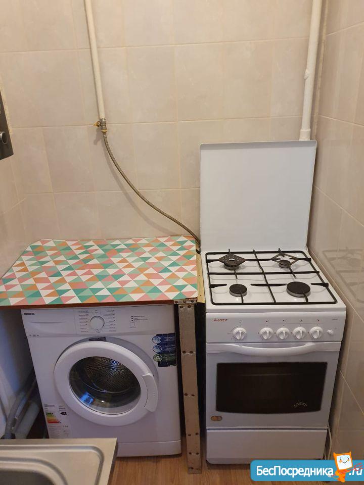 санузел - совмещённый, мебель - кухня, хранение одежды, холодильник, плита, микроволновка, стиральная машина.