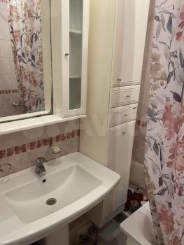 В жилой комнате угловой диван, письменный стол, сплит.система) Маленькая гардеробная. В ванной комнате (ванная, сан.узел, раковина с тумбочкой, стиральная машина). В коридоре небольшой шкаф.