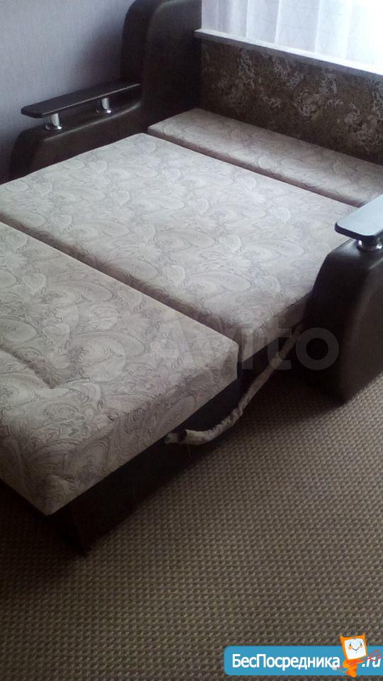 Мебели минимум, диван, комод, шкаф, стол.