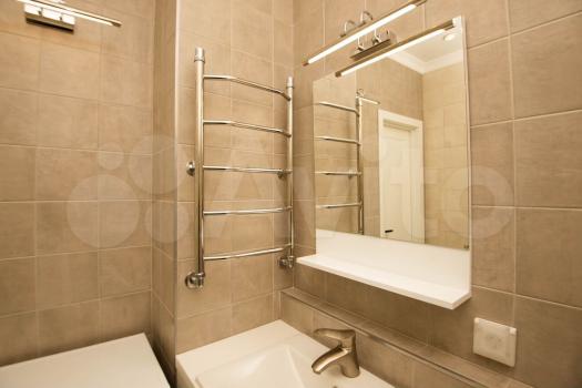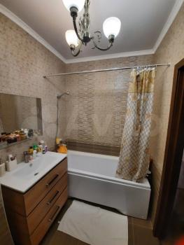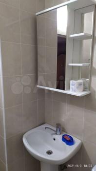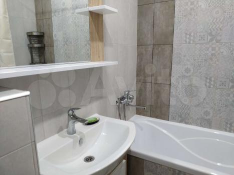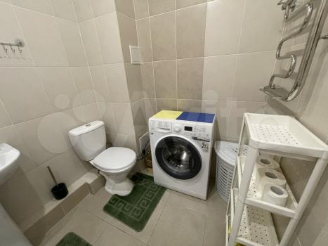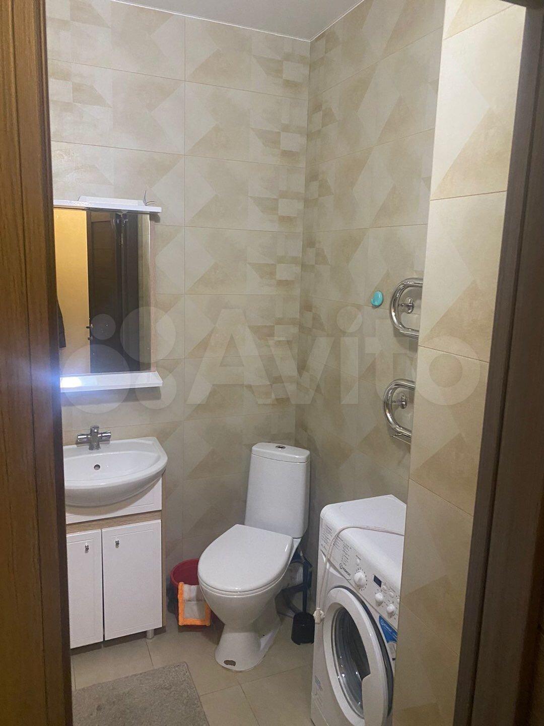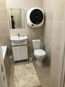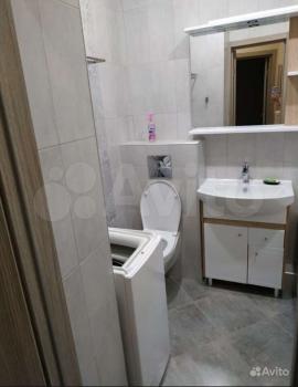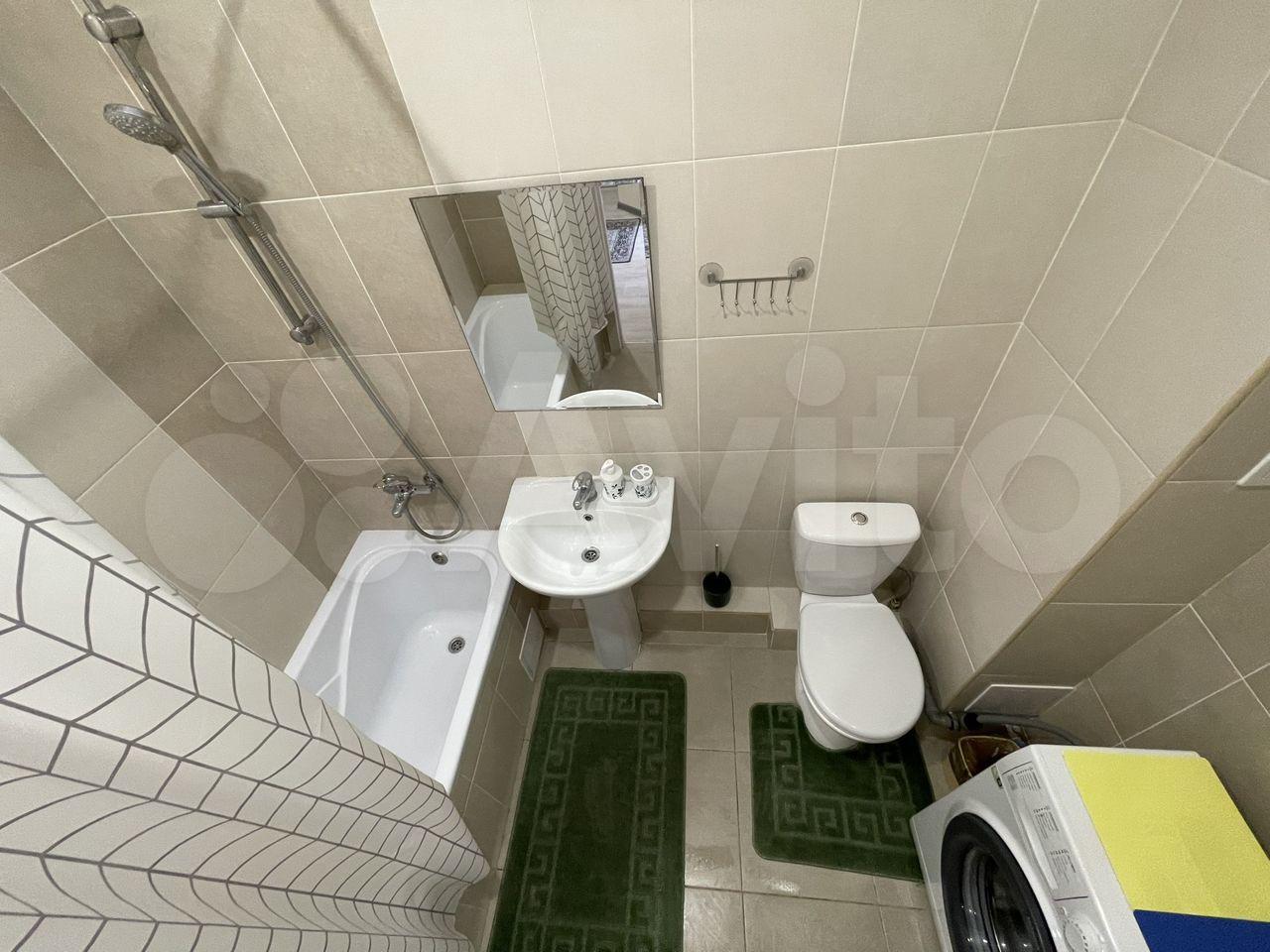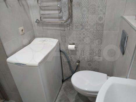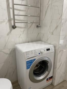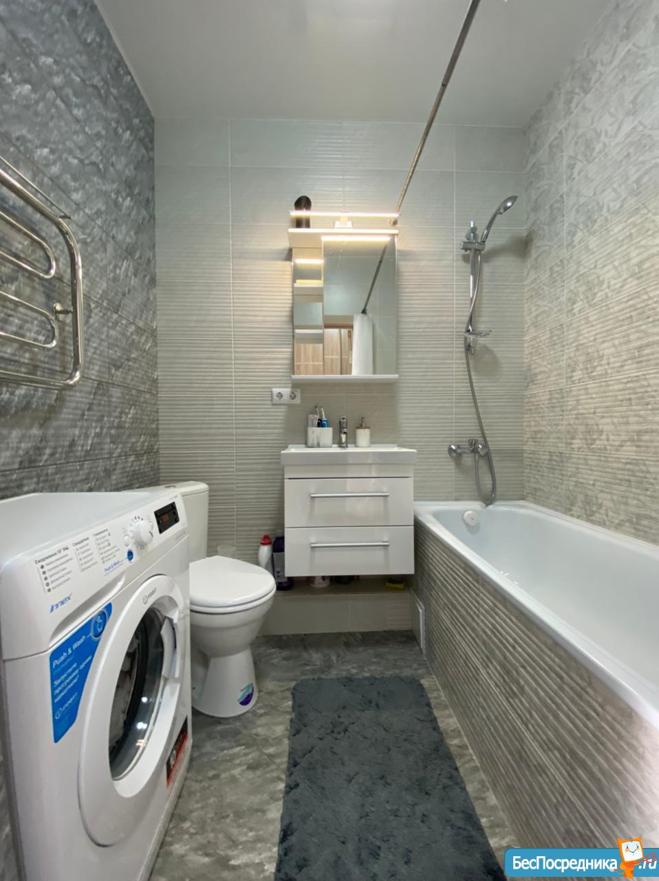 -В ванной новая сантехника, стиральная машинка на 3 кг. (она висит на стене) .