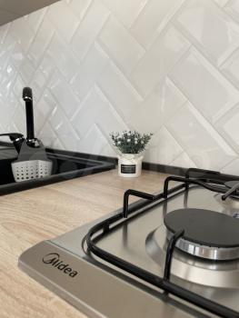 -Есть все для проживания: новая кухня (Печка, микроволновка, холодильник, чайник). В -Квартире газ (свой котёл) - Очень удобно, так как летом воду не отключают никогда, и можно в любое время года выставить температуру обогрева. Отсюда и дешевые КУ 1500-2000 к.