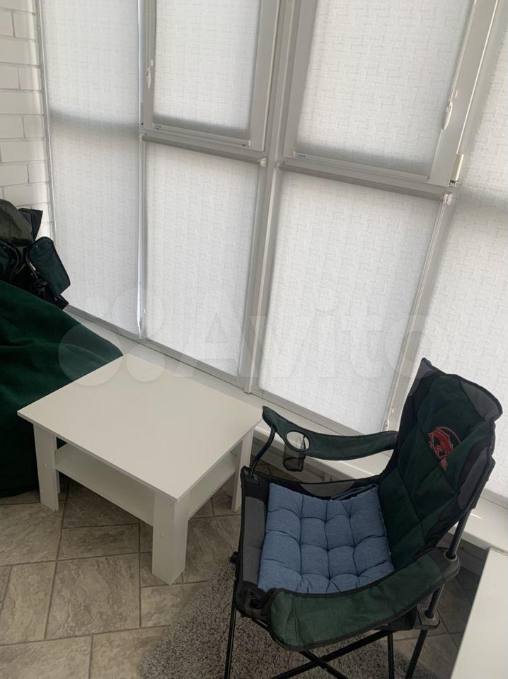 На балконе ещё большое кресло мешок и электрический камин.