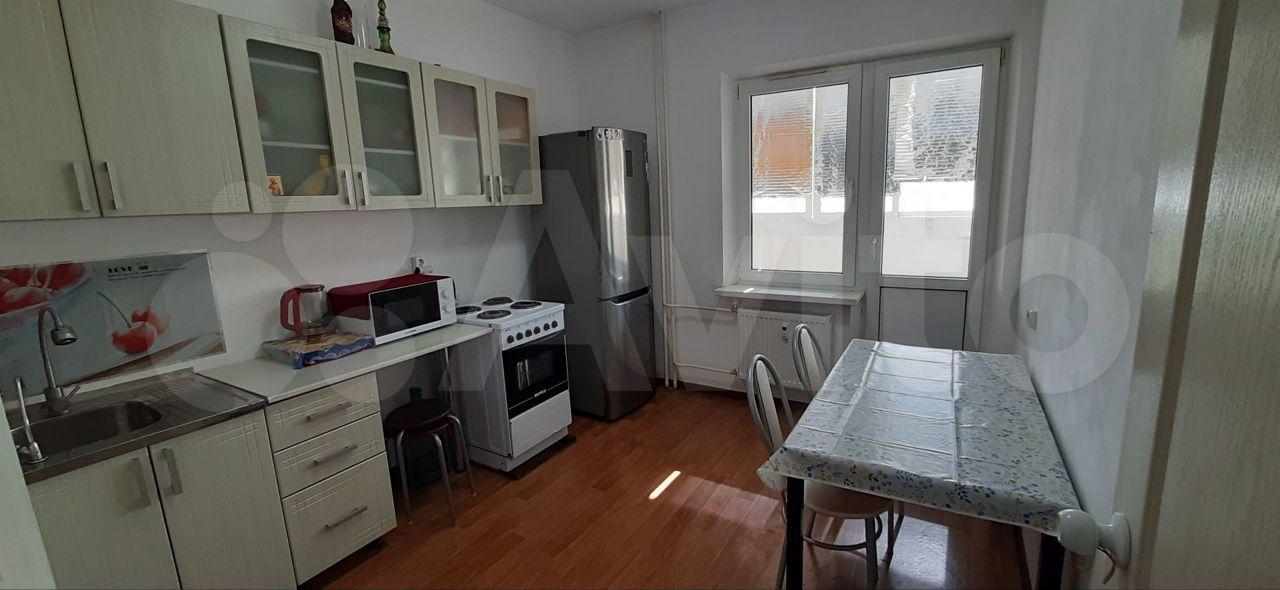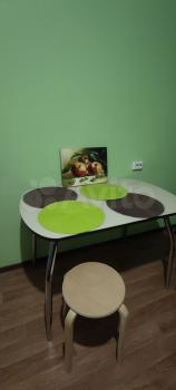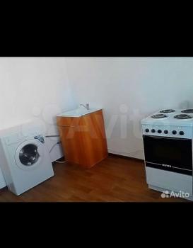 В квартире есть диван, шифоньер, холодильник, стиральная машинка, кухонный стол. Рядом с домом магазины Пятёрочка, Магнит, Чижик, спортивная площадка. Состояние жилья нормальное.