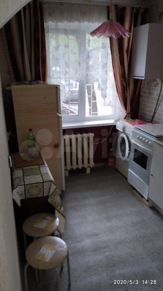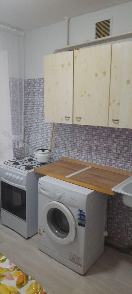 Kвapтирa c мебелью и бытовoй теxникoй. Ecть рacклaднoй диван, шкаф, стиpальнaя машинка, кухонный гарнитур, плита, холодильник, обеденный стол и стулья.