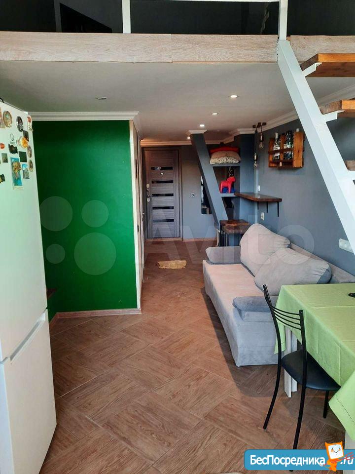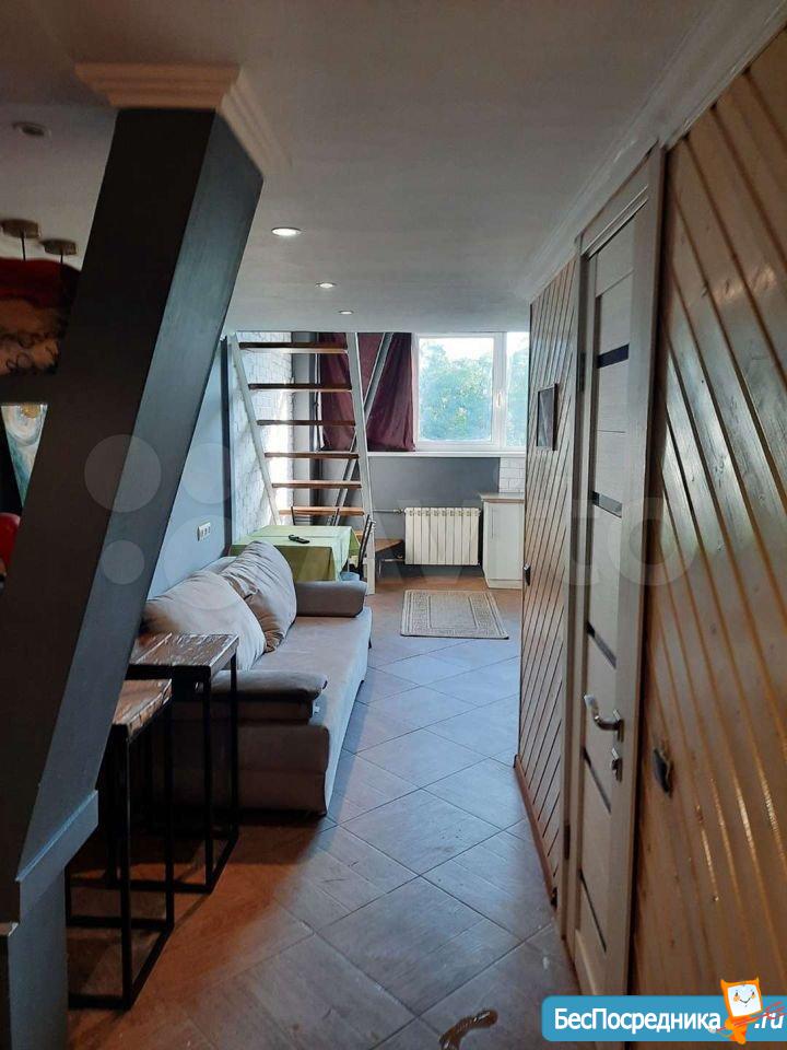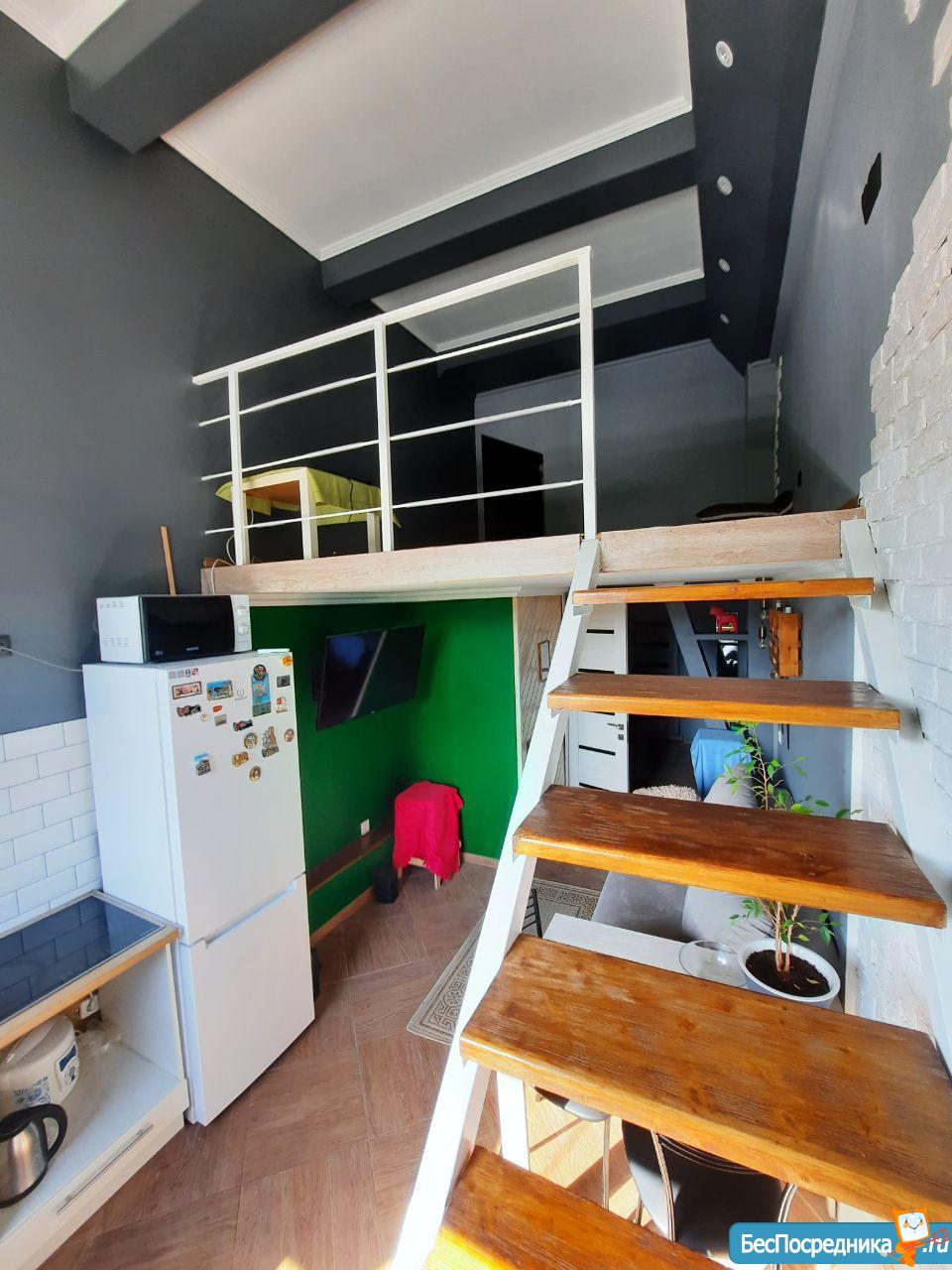 Сдам на длительный срок двухуровневую квартиру студию. Квартира сдаётся с мебелью и техникой ( чайник, варочная панель, стиральная машина, холодильник и кондер)