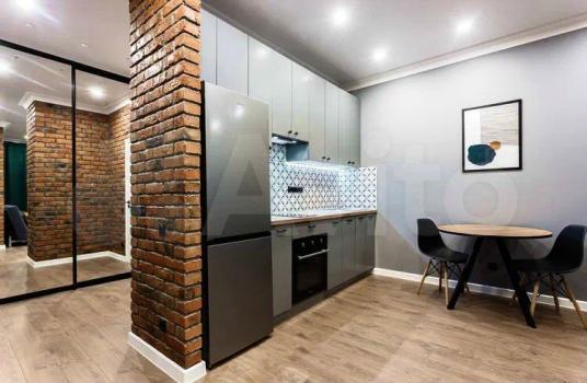 Только закончен ремонт в стиле Лофт. Балкон с большими окнами.