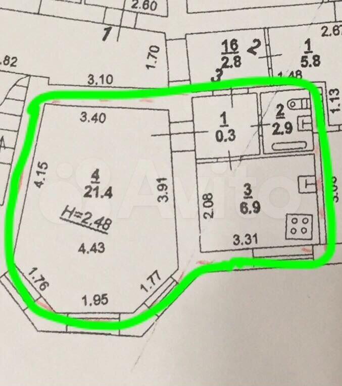 1 этаж кирпичного 10-и этажного дома. Общей площадью 34,2 м2, 7 м2 площадь кухни.