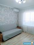 Квартира выполнена в современном стиле с евроремонтом и полностью готова к комфортному проживанию. В наличии вся необходимая мебель: как на кухне, так и в комнате. Из техники есть кондиционер, холодильник, телевизор и стиральная машина. Санузел совмещённый, в ванной комнате установлена ванна. Также имеется лоджия, где можно наслаждаться свежим воздухом.