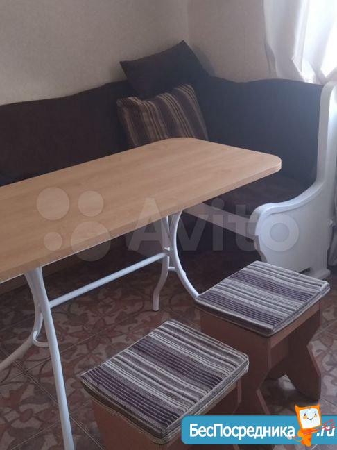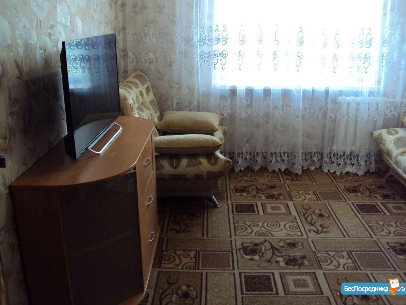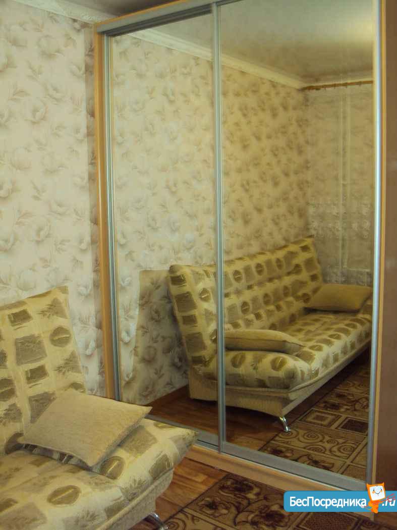 Сдаю 1- кв. на длительный срок. Рядом магазины, дет. сад ( в 20 м. от дома), школа ( в 100м. от дома) . В комнате: диван, кресло- кровать, стол, стул, стенка, шкаф- купе. Кухня: кухонный гарнитур, стол, кухонный уголок, два стула.