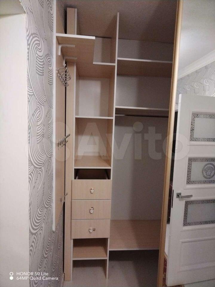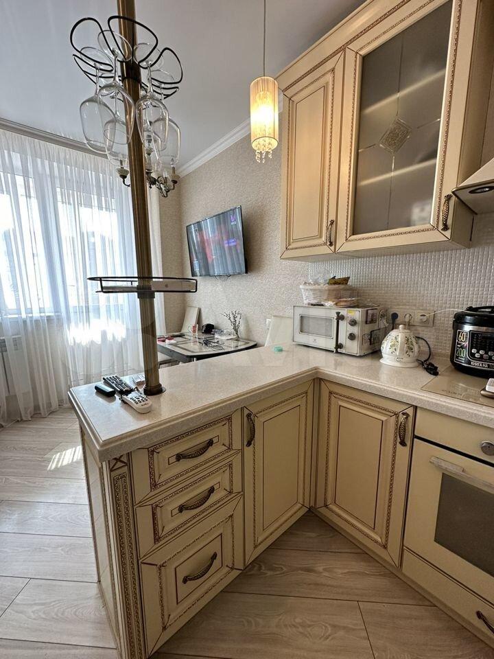 ▶️Мебель: просторный раскладной диван, стол раскладной, стулья, практичная стенка-шкафы, просторный компьютерный стол, а также вместительный шкаф-купе гардеробная и шикарная кухня, отделанная кристаллами Swarowski (не шучу). На балконе находится раскладной диван.