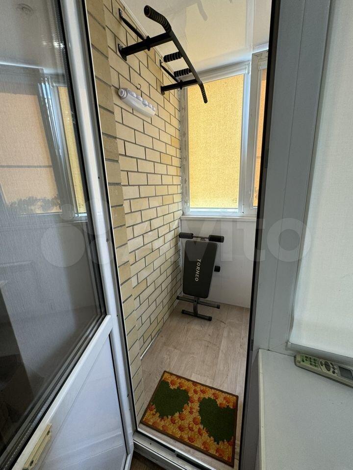 Просторная лоджия. На лоджии турник, тренажер для пресса.