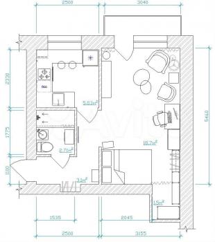 На кухне устроена сортировка мусора, можно вместо неё поставить второй барный стул. Так же обсуждаема замена кресел на диван.